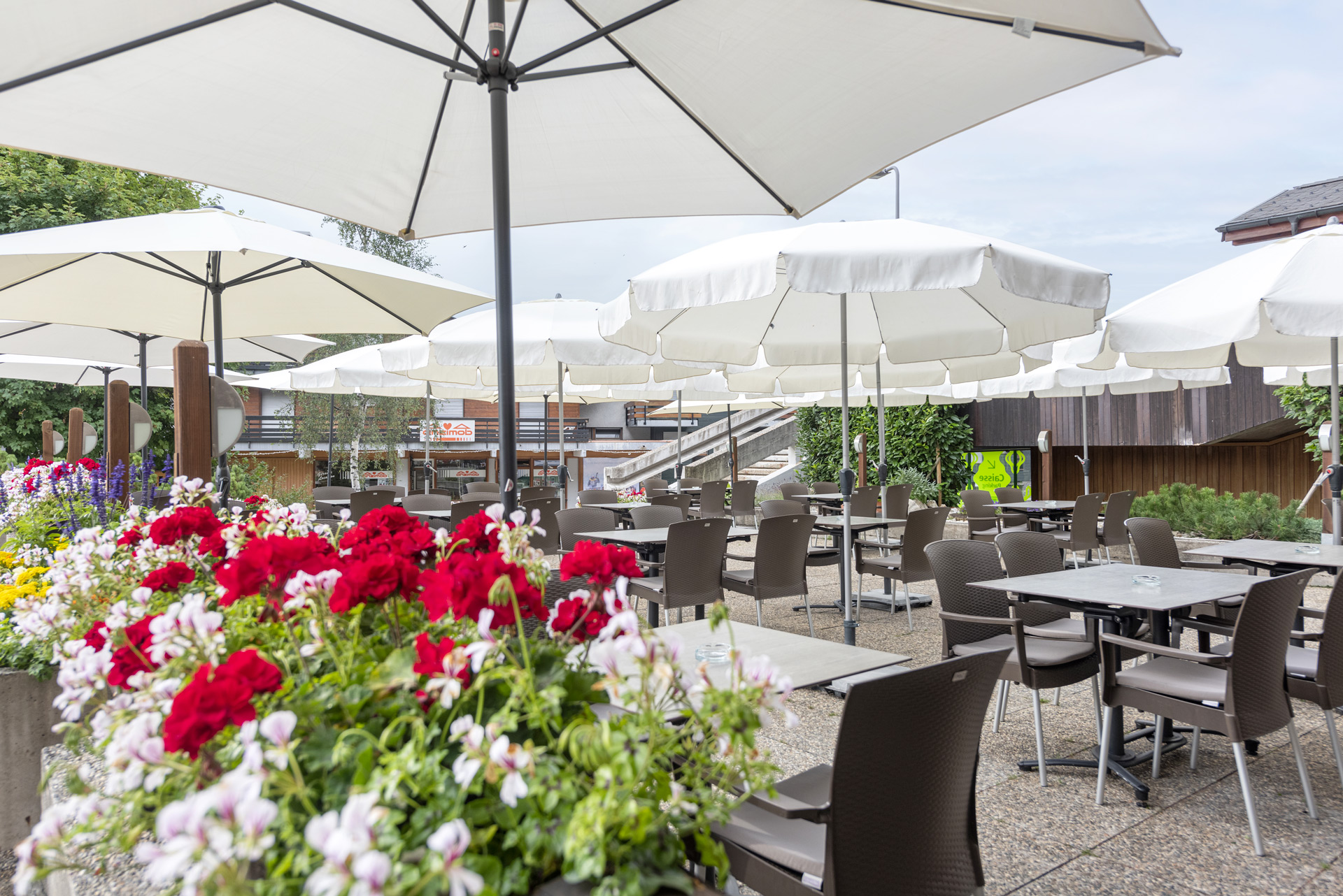 En été, une grande terrasse fleurie vous invite à vous détendre au cœur du village.